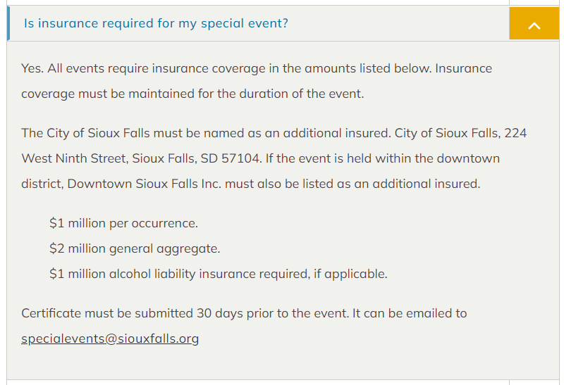 Does anyone have a guideline or set of requirements for their event insurance programs they are willing to share?